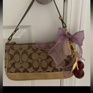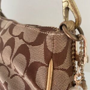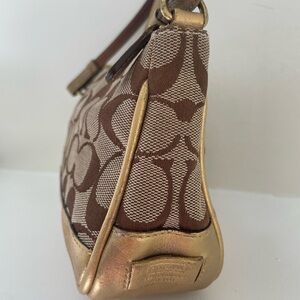 Coach mini bag gold signature leather and fabric 8.5x5x2.25 strap drop 6