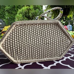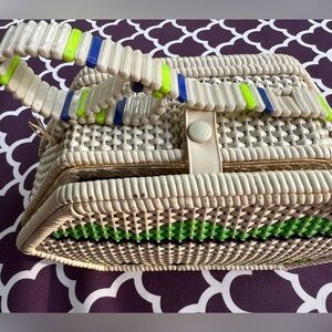 Women’s white vintage antique hand bag beads and wood