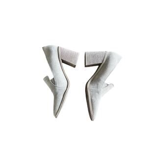 Great suede chunky block heels. Suede fabric. Size 7.5. Light wear and small blemish on back of one heel. See pics