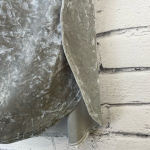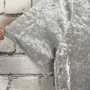 EUC Faded Glory velvet shirt sleeves t shirt top in a grey silver color size 1X. This top is perfect for a NYE party! The color has gives off a silver color in the light. Short sleeved. It has a rounded split side seam. Poly blend material.