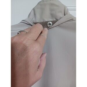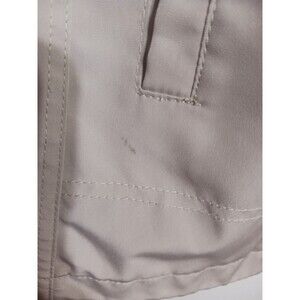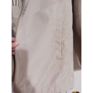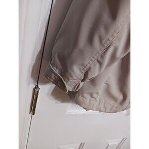 Women's Liz Claiborne LizWear jacket size large. 100% polyester. Feels like it is water resistant. Light Taupe. Neck has hidden place to snap a hood, but no hood is included. Small light mark under pocket as pictured. Good pre-owned condition.