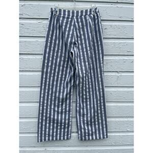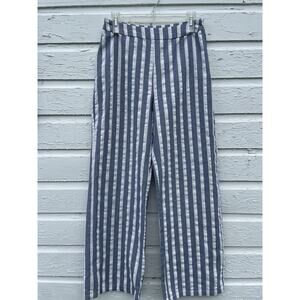 Pink Lily Pants Women L W:30 Blue Linen Striped Wide Leg Beach Coastal Swishy