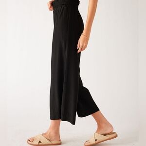1. crepe, cropped, wide leg, elastic waist, with front tie, two front pockets