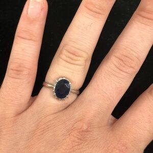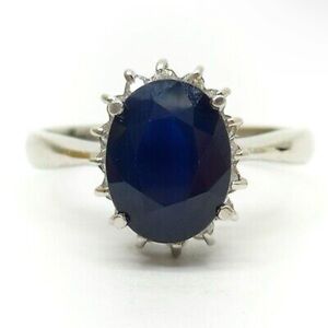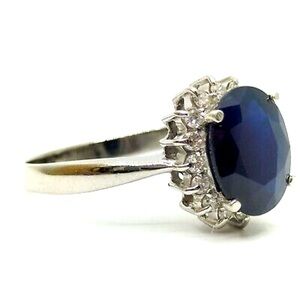 4.5ct Natural Blue Sapphire w White Diamond Halo Princess Diana Engagement Ring