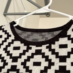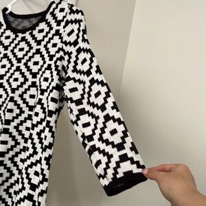 Light gray retro printed sweater with 3/4 quarter sleeve. It’s a fitted large or a comfortable medium. Preowned from a non smoking and pet free home.