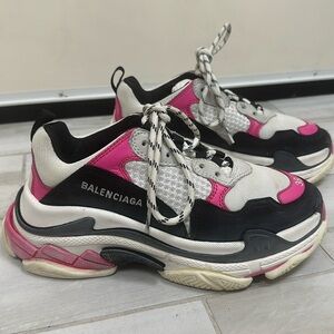 Slightly worn, good condition triple S Balenciaga sneakers hot pink/white/black