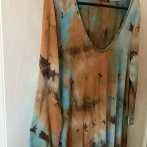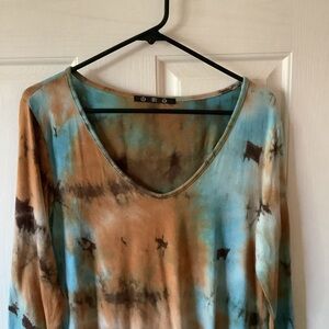 COIN 1004 Brand Asymmetrical long sleeved top, multi color, size L, fabric is 95% rayon & 5% spandex.