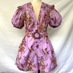 Farm Rio Monkey Floral Puff Sleeve V Neck belted Romper * XL