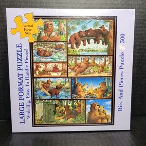 Bits And Pieces Puzzle Bear County 300 Pieces. Get ready for a roaring good time with this jigsaw puzzle. This puzzle is sure to delight animal lovers of all ages. With its 300 Pieces, it provides the right level of challenge without being overwhelming. Still factory sealed.
