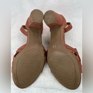 White mt. Brick colored ankle strap heels - has manufacturer color errors shown in pictures. Price has been adjusted