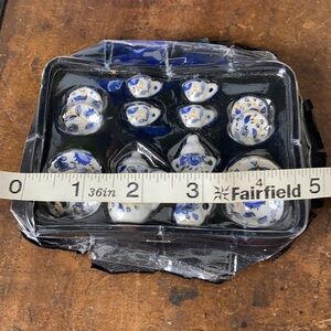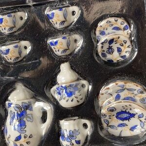 - Vintage Miniature Ceramic Victorian Dollhouse Blue & White Kitchen Dish Set