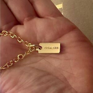 Brand New without tags and absolutely stunning describes this Coach Gold Hang Tag Pendant beautifully displayed on this Authentic 18k/.925 Chunky Style Necklace.