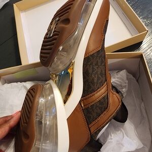 Gorgeous Michael Kors Trainer to style with any of your classic Michael Kors logo items! You won't want to take these off! I needed a bigger size, unfortunately, but these are Fabulous!! Color is Luggage-don't miss out Beauty!