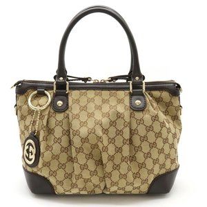 Used GUCCI Sukey GG Canvas Handbag Tote Bag Leather Khaki Beige Dark Brown 247902 (SKU: GZl134z7)