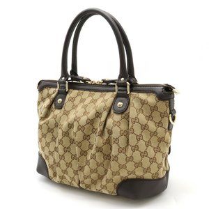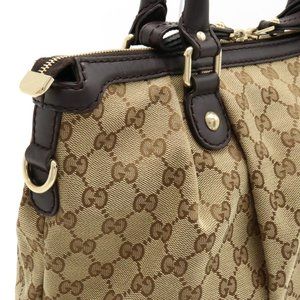 GUCCI Sukey GG Canvas Handbag Tote Bag Leather Khaki Beige Dark Brown 247902