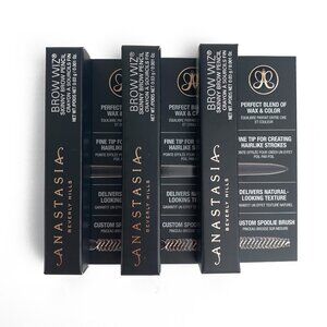 Anastasia Beverly Hills Brow Wiz Travel: The ultra-slim, retractable eyebrow pencil for precise, hair-like definition and control. Its unique wax formula offers high color payoff and a natural-looking finish. The 1mm tip creates fine strokes, while the custom spoolie brush blends seamlessly.