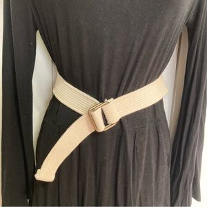 Woven Web Belt Cream Square Buckle Unisex Men Women Waist 26 Inches