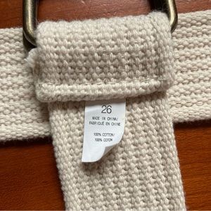 Woven Cotton Web Belt Cream Square Buckle UNISEX Men Women Waist 26 Inches