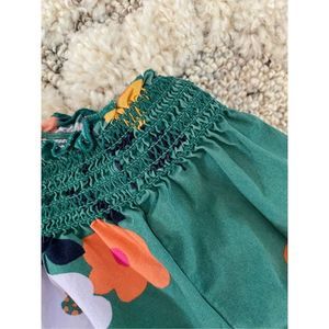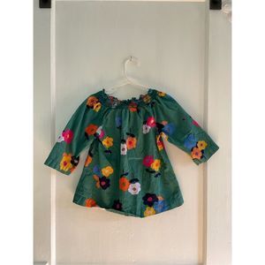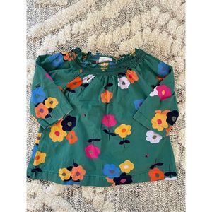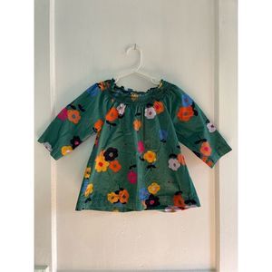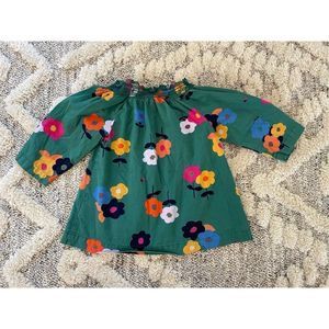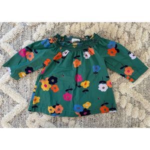 Hanna Andersson Top Smock Neck 3/4 Sleeve Floral Ladybug Green Girls Kids Size 4