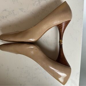 Great used condition Bandolino nude patent leather heels! Comfortable and literally goes with everything from ankle jeans to cocktail attire. Minor marks as pictured but lots of great wear left! Sadly just don’t reach for heels as often!