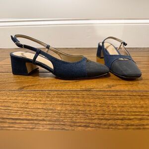 @2ccarlino2 no box or dust bag. Heel is a black stacked wooden-like heel.