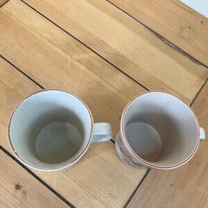 Set of 2 Vintage Northcraft ceramic mugs were made in Korea. One has a design of a Teal duck family, and the other has a design of a Red Breasted Merganser pair. Mugs stand approx. 4" tall x 3 1/4" across not including handle. Holds approx. 8 oz. Pre-owned vintage condition: Merganser mug has some discolorations/color variations in ceramic inner surface.