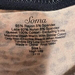 NWT Soma Embraceable Lace High Leg Underwear Panty Cheetah Feline Sz L #0105