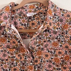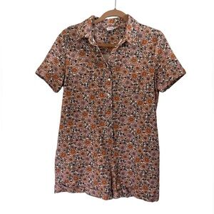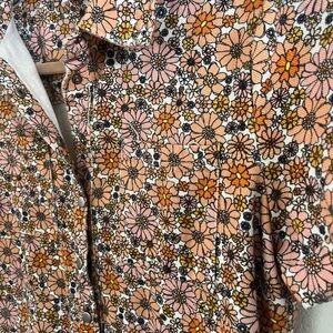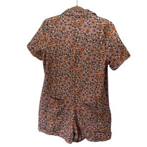 Storia Orange, & Coral Floral Denim Romper SZ S