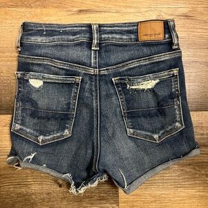 New without Tags ~ WOMEN’S / LADIES AMERICAN EAGLE AEO DENIM HI RISE SHORTIE NEXT LEVEL STRETCH X SHORTS DISTRESSED FRAY CUT OFF LOOK OR CUFFED LOOK ~ GORGEOUS COLOR ~