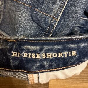 New AMERICAN EAGLE DENIM HI RISE SHORTIE STRETCH SHORTS DISTRESSED FRAY Size 2