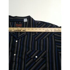 Plains Vintage Western Wear Shirt Mens XL Pearl Snap Black Blue Stripe LS