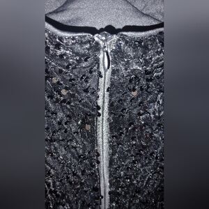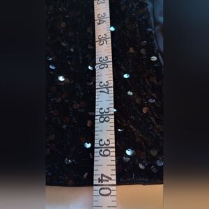 Spaghetti strap Shein Icon black dress with sequin on velvet-like fabric. Straps and dress have stretch. Size large. Invisible zipper on back. Front/side slit approximately 18". From center V to Hem approximately 40". From center back to Hem approximately 39".