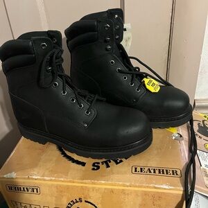 New . Never worn Texas steer size 10 steel toe leather boots. These boots have been stored in my closet . I do see little marks at top of boots from being stored .Please see pictures.