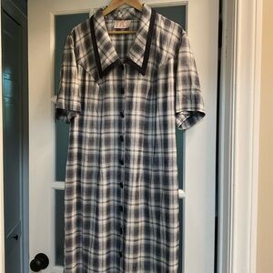 Care tag has been removed so unsure exact size/material. In excellent condition - this would be amazing to wear in the fall. Cute collar & large fabric buttons. For the vintage lover out there, this cute dress is perfect! Measurements: Bust - 23” Length - 46”