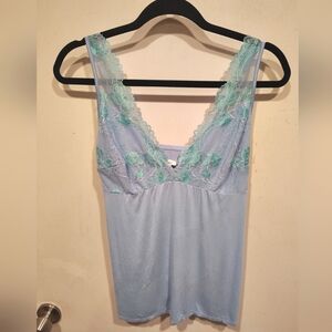 Umgee Floral Spaghetti Strap Swing Tank w/Lace Hem Size L- Cottagecore Romantic