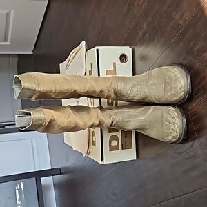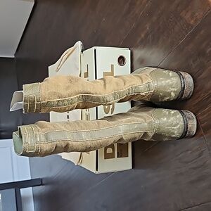 Diesel Prarie Slouch Boots in Military Olive, US size 7. Loved these but my feet grew after having kids and they're a bit snug now. the style had a worn look when I bought them and cardboard inserts keep them upright although they slouch on my calves when worn.