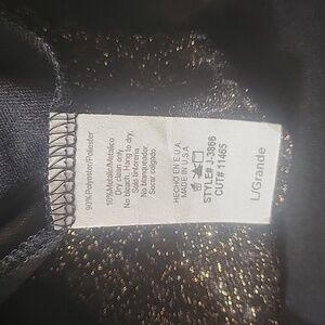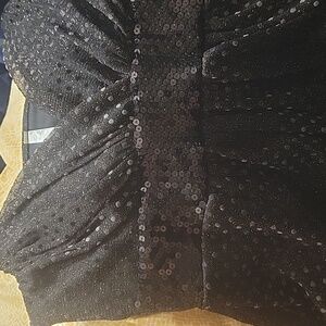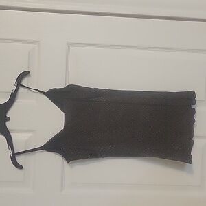 Dressy black sparkling spaghetti top with a strip of sequence right below the chest.