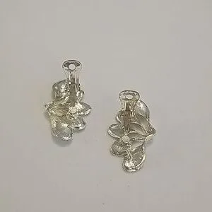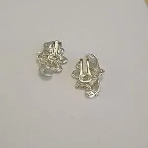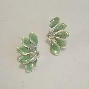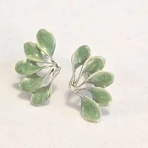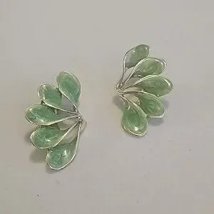 Vintage Dainty Green Enamel Floral Theme Clip On Earrings.