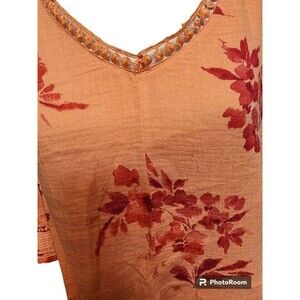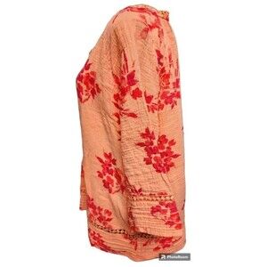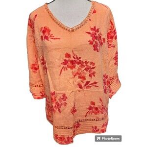 Soft Surroundings Orange Blouse Size PXL Cotton Crochet Accents
