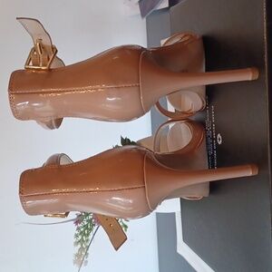 Kenneth Cole sz 8 Beige gold trim sole 4 inch open toe Ankle Strap Heel