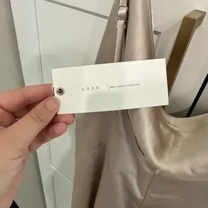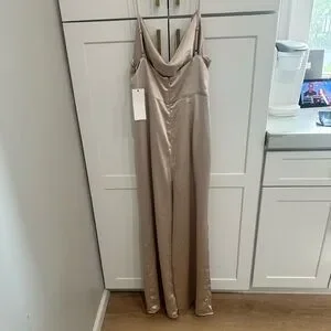 Gorgeous satin jumpsuit with cowl neckline in beautiful champagne color. Brand new with tags!