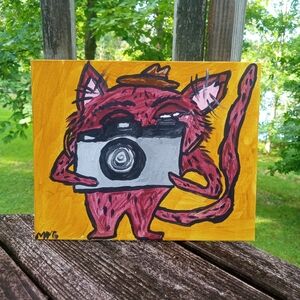 Cat Taking A Picture Painting Folk Art Home Whimsical Decor