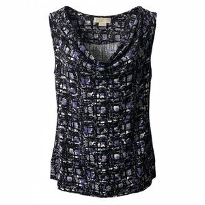 Michael Kors Sleeveless Blouse Plus Size 2X Cowl Neck Purple Black White Knit