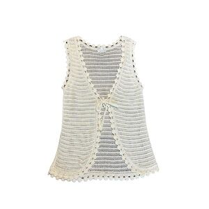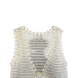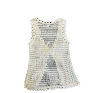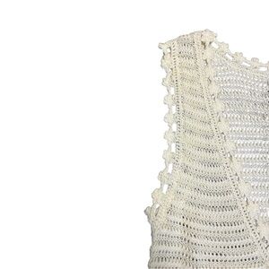 Christopher & Banks crochet hippie vest front tie daisy detail size XL
