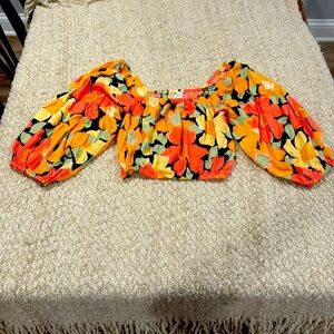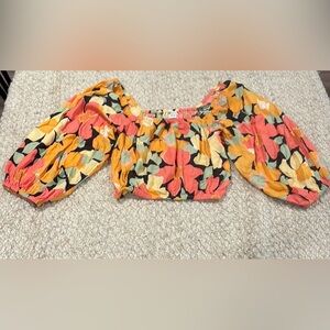 Billabong Floral Crop Top size Small Orange/green/brown/yellow