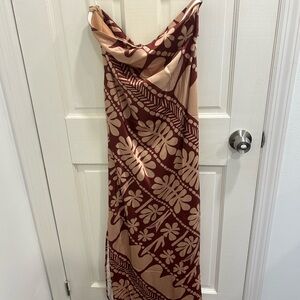 Petal and Puo saying strapless tropical print dress in brown and beige. Dress comes with some stretch. This dress is perfect! Size large! worn once and in great condition.