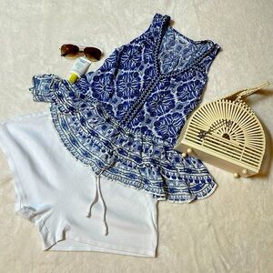 Urban Outfitters Patrons of Peace Hi Low Peplum Flowy Blue Floral Tank XS