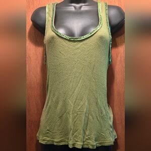 This is a gently tested super cute olive green cotton racerback tank top by Metro7. This has cute sequins decorating the edges that elevates this everyday top to another level. There are no holes or stains and is in like new condition. The approximate unstretched measurements;