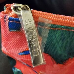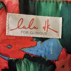 New without Tags Clinique Makeup Purse by Lulu DK in bright floral print, in new giftable condition no wear or callouts. Measures 10.5 inches across by 6 inches tall by 4 inches deep. Ships from smoke-free and pet free home.