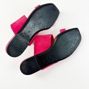 LOUIS VUITTON Pink Bayfront Slide Sandals 39 US 8.5 Gold Logo Suede Flat Mules